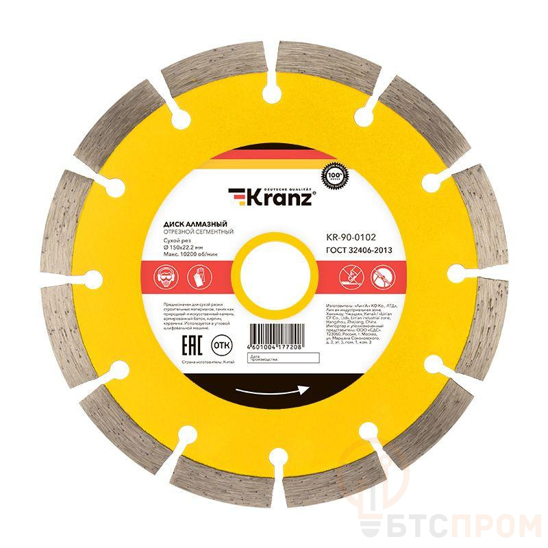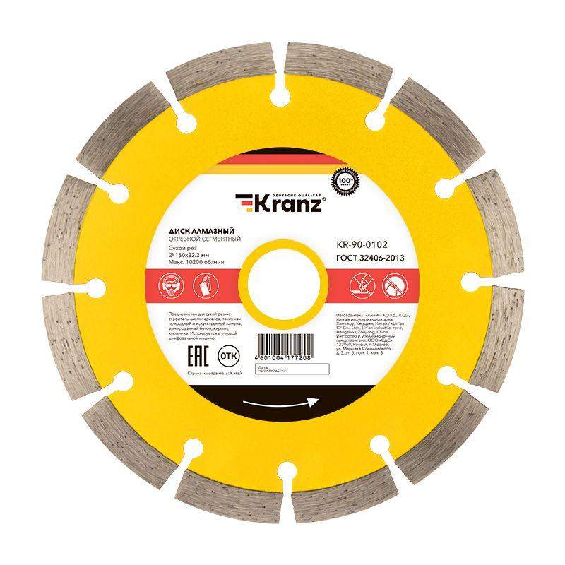 Диск отрезной алмазный сегментный 150х22.2мм Kranz KR-90-0102 фото в каталоге от BTSprom.by