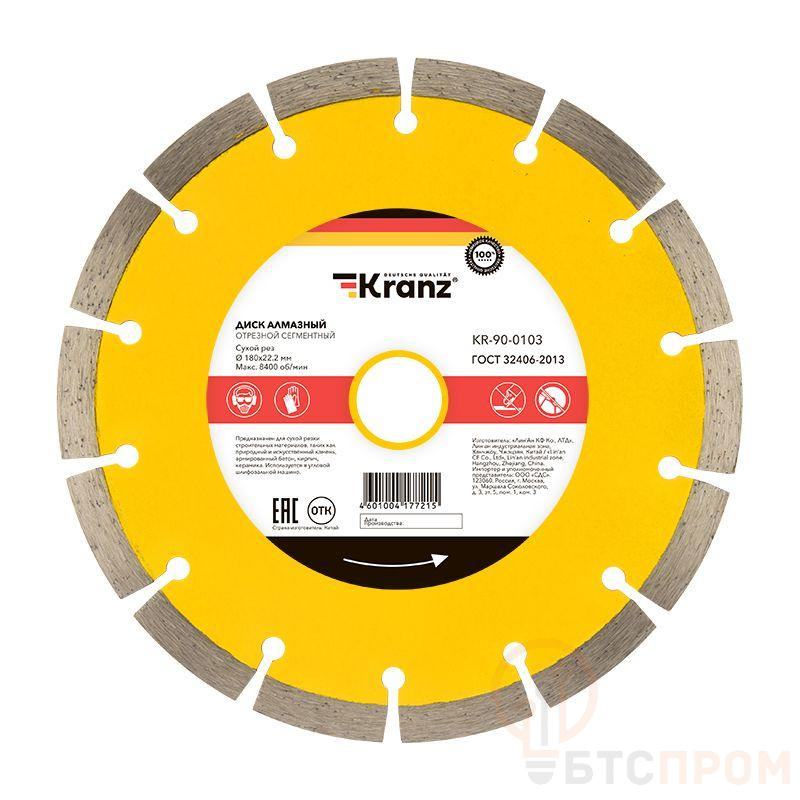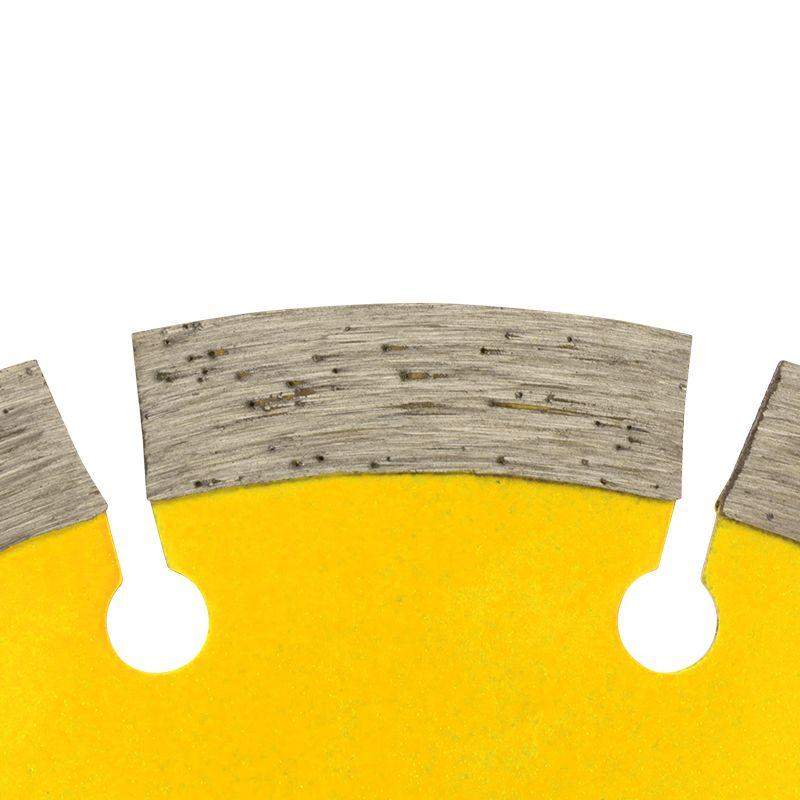 Сегментный алмазный отрезной диск предназначен для сухой резки строительных материалов, таких как природный и искусственный камень, армированный и неармированный бетон, кирпич, керамика, керамогранит. Используется в угловых шлифовальных машинах, ручных электрических плиткорезах, а также в штроборезах. Диск состоит из стального корпуса и алмазных сегментов, с высотой рабочей кромки 10 мм, что обеспечивает эффективную резку материала и долгий срок службы самого диска. Благодаря сегментированной форме диска достигается наиболее быстрый рез. Процесс резки сопровождается воздушным охлаждением. Срок годности не ограничен. Хранить в сухом прохладном месте. Использовать строго по назначению. Внимание! Запрещается использовать диск для резки металлов. При установке диска руководствуйтесь стрелкой направления вращения диска. Используйте средства индивидуальной защиты. Не утилизируйте с бытовыми отходами.