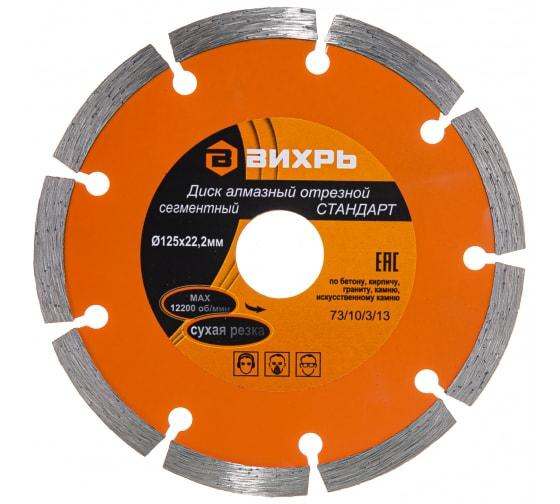 Диск отрезной алмазный сегментный СТАНДАРТ 125х22.2мм сухая резка Вихрь 73/10/3/13 фото в каталоге от BTSprom.by