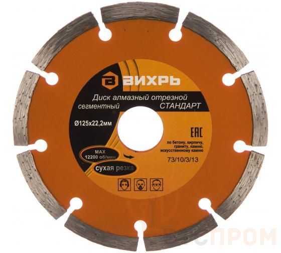 –Диск отрезной алмазный сегментный СТАНДАРТ 125х22.2мм сухая резка Вихрь 73/10/3/13