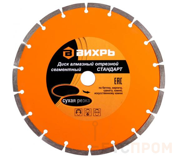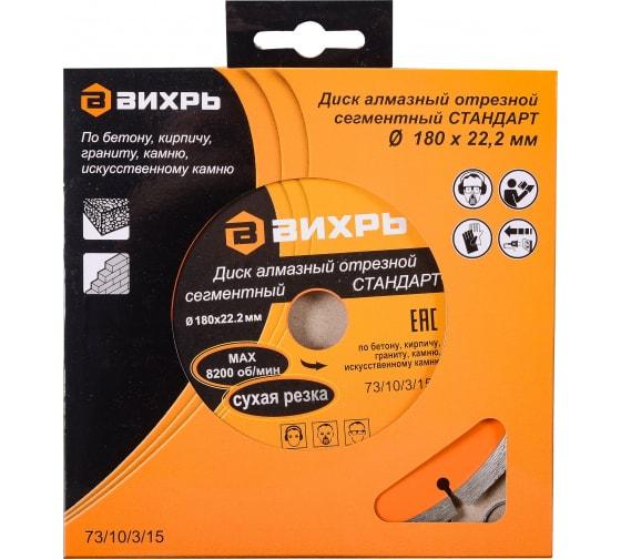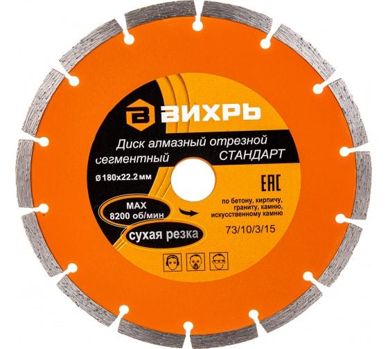 –Диск алмазный отрезной сегментный СТАНДАРТ 180х22.2мм сухая резка Вихрь 73/10/3/15