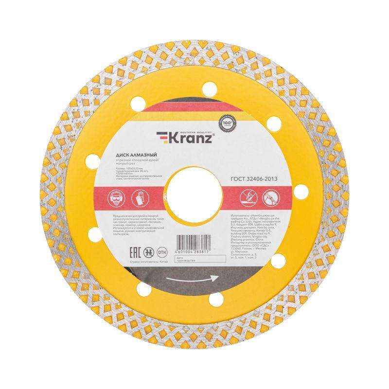 Диск отрезной алмазный сплошной 125х22.2мм KRANZ KR-90-0116 фото в каталоге от BTSprom.by