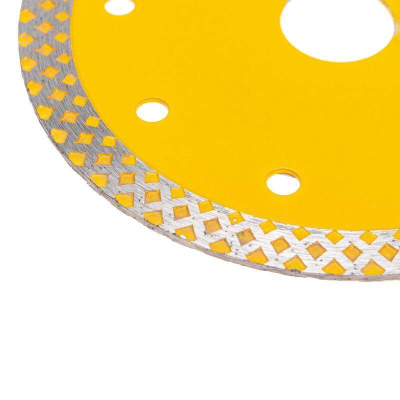 Диск алмазный отрезной сплошной KRANZ предназначен для сухой и мокрой резки строительных материалов, таких как гранит, керамогранит, песчаник, клинкер, мрамор, керамика. Используется в угловой шлифовальной машине, ручном электрическом плиткорезе. Инструмент выполнен из инструментальной стали и синтетического алмаза. Изготовлен методом горячего прессования, что значительно улучшает качество металлической связки и обеспечивает высокую концентрацию алмазов. Процесс резки сопровождается воздушным охлаждением за счет особой формы алмазного слоя, который расширяет функционал диска и позволяет использовать сухой рез, который получается ровным и аккуратным. Срок годности не ограничен. Хранить в сухом прохладном месте. Использовать строго по назначению. Внимание! Запрещается использовать диск для разрезания металлов. При установке диска руководствуйтесь стрелкой направления вращения диска. Используйте средства индивидуальной защиты. Не утилизировать с бытовыми отходами.