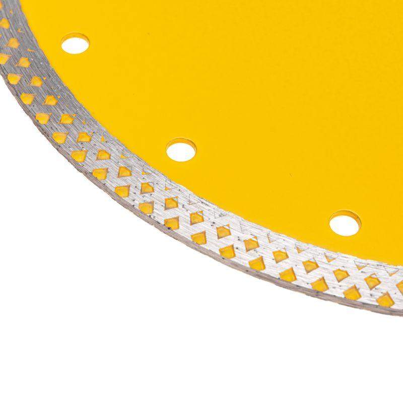 Диск алмазный отрезной сплошной KRANZ предназначен для сухой и мокрой резки строительных материалов, таких как гранит, керамогранит, песчаник, клинкер, мрамор, керамика. Используется в угловой шлифовальной машине, ручном электрическом плиткорезе. Инструмент выполнен из инструментальной стали и синтетического алмаза. Изготовлен методом горячего прессования, что значительно улучшает качество металлической связки и обеспечивает высокую концентрацию алмазов. Процесс резки сопровождается воздушным охлаждением за счет особой формы алмазного слоя, который расширяет функционал диска и позволяет использовать сухой рез, который получается ровным и аккуратным. Срок годности не ограничен. Хранить в сухом прохладном месте. Использовать строго по назначению. Внимание! Запрещается использовать диск для разрезания металлов. При установке диска руководствуйтесь стрелкой направления вращения диска. Используйте средства индивидуальной защиты. Не утилизировать с бытовыми отходами.