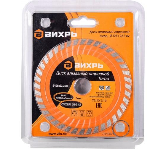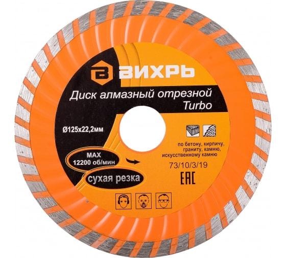 Диск алмазный отрезной Турбо 125х22.2мм сухая резка Вихрь 73/10/3/19