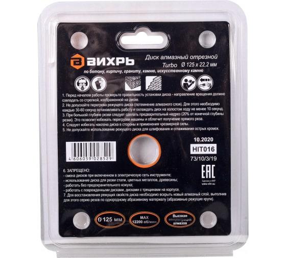 Диск алмазный отрезной Турбо 125х22.2мм сухая резка Вихрь 73/10/3/19 фото в каталоге от BTSprom.by