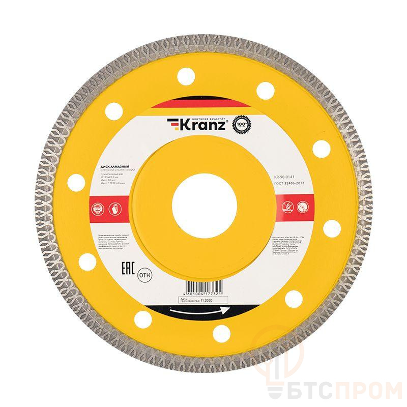 Диск отрезной алмазный ультратонкий 125х22.2мм Kranz KR-90-0141 фото в каталоге от BTSprom.by