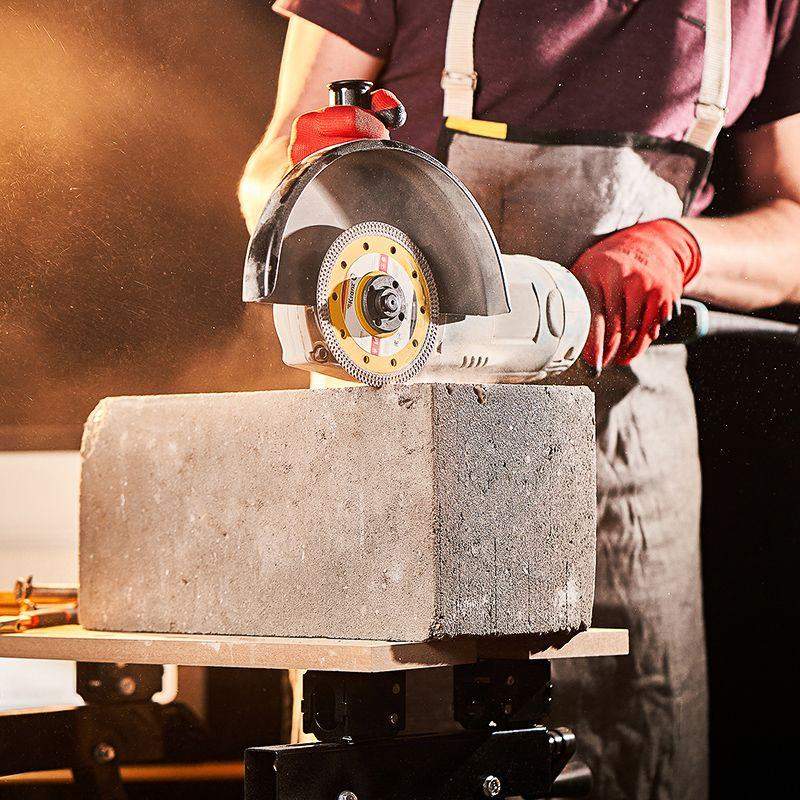 Диск алмазный отрезной ультратонкий предназначен для использования с угловыми шлифовальными машинами (УШМ) и ручными электрическими плиткорезами. Применяется для сухой и мокрой резки строительных материалов, таких как гранит, керамогранит, песчаник, клинкер, мрамор, керамика. Диск изготовлен из инструментальной стали и обладает ультратонким лезвием, покрытым синтетическим алмазом с высотой кромки 10 мм, что обеспечивает точную и чистую резку и долгий срок службы самого диска. Процесс резки сопровождается воздушным охлаждением за счет особой формы алмазного слоя. Это позволяет пилить без водяного охлаждения. Срок годности не ограничен. Хранить в сухом прохладном месте. Использовать строго по назначению. Внимание! Запрещается использовать диск для разрезания металлов. При установке диска руководствуйтесь стрелкой направления вращения диска. Используйте средства индивидуальной защиты. Не утилизируйте с бытовыми отходами.