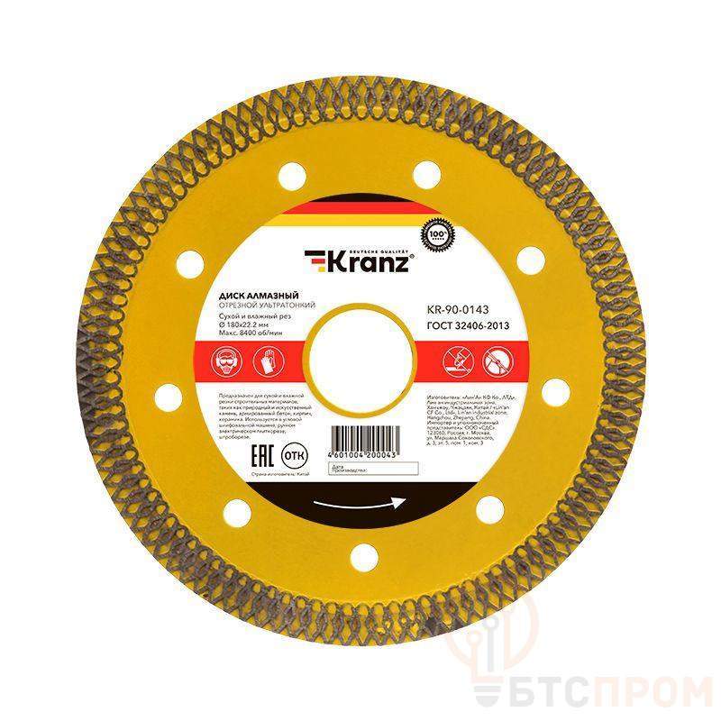 Диск алмазный отрезной ультратонкий 180х25.4/22.2х1.8х10мм Kranz KR-90-0143 фото в каталоге от BTSprom.by