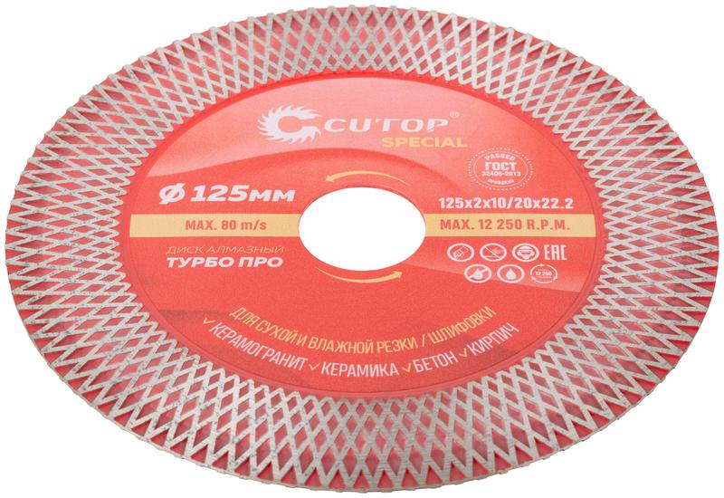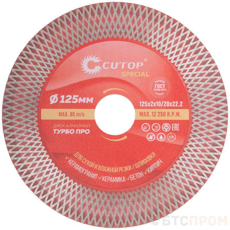 Диск отрезной/шлифовальный алмазный по керамограниту плитке и камню профессиональный Турбо Про Special 125х2х10/20х22.2мм Cutop 71-874