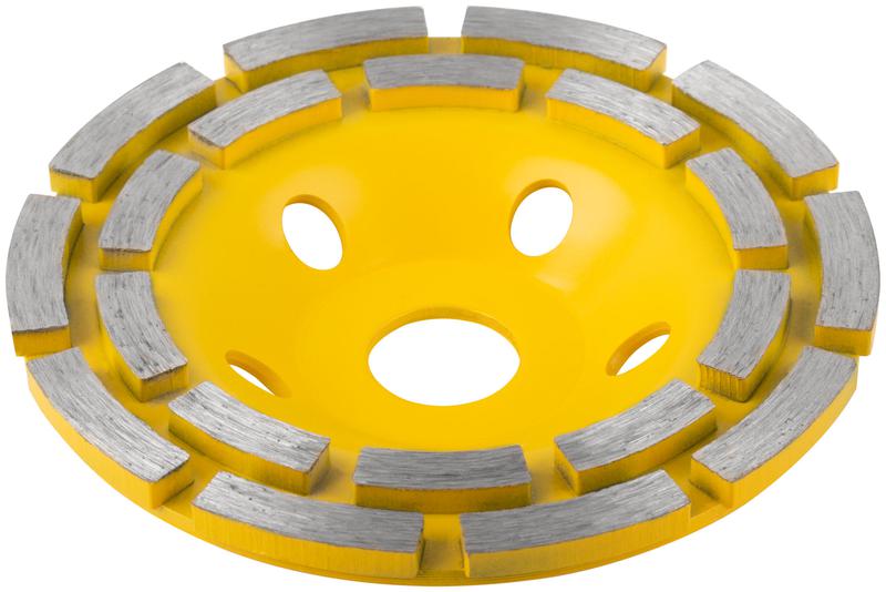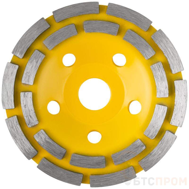 Диск алмазный шлифовальный FIT IT предназначен для выравнивания кромки, шлифовки и полировки бетона, гранита, мрамора и аналогичных строительных материалов. Подходит для тонкой обработки. Рабочая поверхность из 20 сегментов, расположенных в два ряда, содержит порошок из технических алмазов, что позволяет работать с самыми твердым и прочным материалам. Специальные отверстия в корпусе и форма расположения сегментов улучшают отвод отработанного материала и усиливают воздушное охлаждение. Широкая рабочая поверхность увеличивает скорость и эффективность работы.