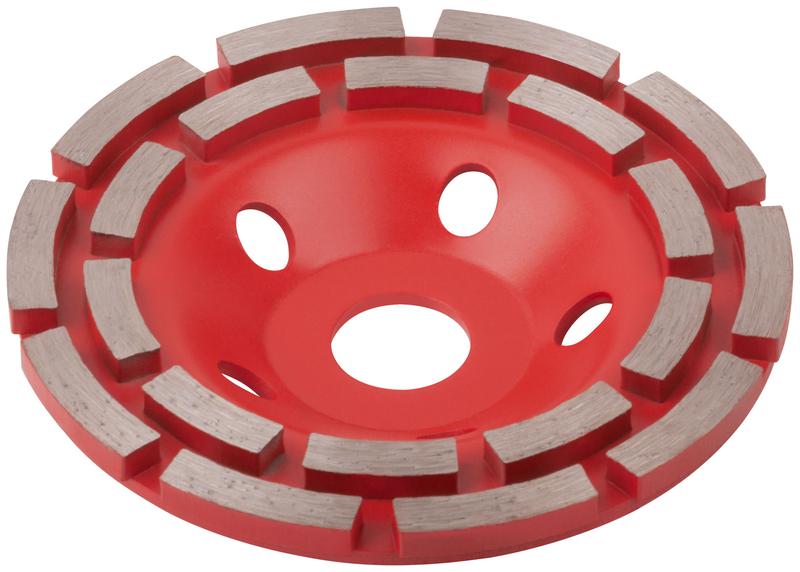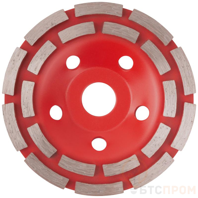 Диск алмазный шлифовальный ‘’чашка’’ КУРС предназначен для устранения неровностей, зачистки и шлифования кирпича, бетона, мрамора, гранита и других твердых материалов. Двухрядное расположение алмазных сегментов способствует повышению скорости работ. Специальные отверстия в корпусе усиливают воздушное охлаждение. Широкая рабочая поверхность увеличивает скорость и эффективность работы.