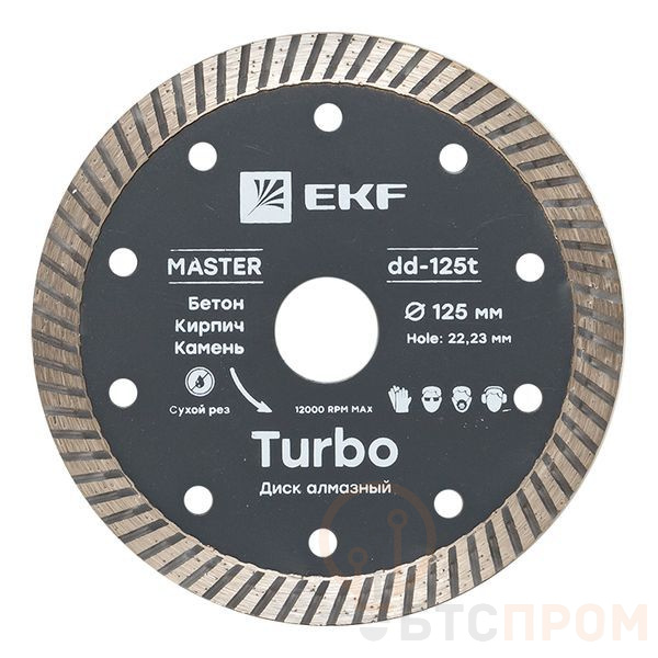 Диск алмазный Turbo Master предназначен для резки бетона, бордюрного камня, кирпича, тротуарной плитки, твердого песчаника и гранита. Особенности: Турбосегментная форма режущей кромки быстрый и аккуратный рез в обрабатываемом материале.