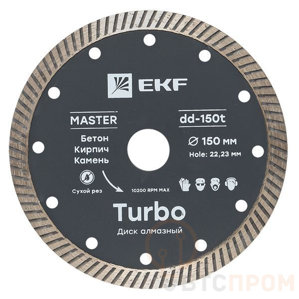 Диск алмазный Turbo Master предназначен для резки бетона, бордюрного камня, кирпича, тротуарной плитки, твердого песчаника и гранита. Особенности: Турбосегментная форма режущей кромки быстрый и аккуратный рез в обрабатываемом материале.