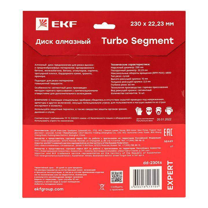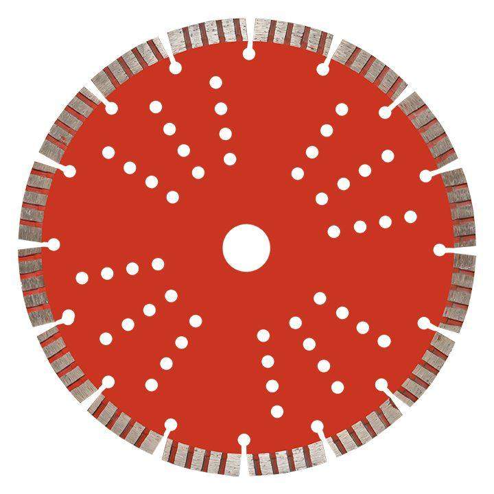 Диск алмазный Turbo Segment предназначен для армированного бетона, слабо армированного бетона, бетона, бордюрного камня, натурального камня, тротуарной плитка, кирпича. Особенности: рифлёные сегменты режущей кромки обеспечивают высокую скорость реза, перфорация корпуса способствует дополнительному охлаждению диска. Технология производства: горячее прессование