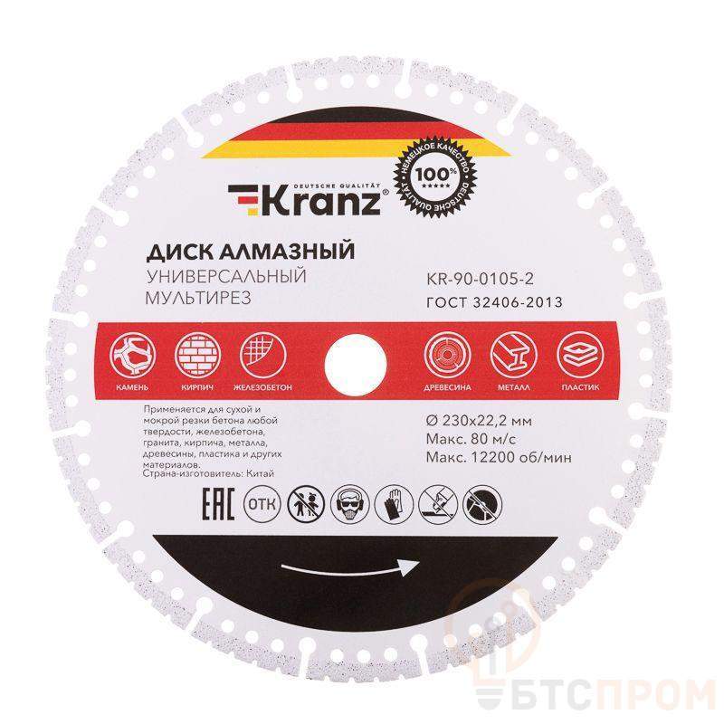 Алмазный универсальный диск KRANZ применяется для сухого и мокрого реза бетона любой твердости, железобетона, гранита, кирпича, металла, древесины, пластика и других материалов. Корпус диска изготовлен из прочной легированной стали, способной выдержать значительную механическую нагрузку и высокую температуру. Применение технологии высокотемпературного вакуумного спекания алмазов позволяет резать самые твердые материалы без применения водяного охлаждения. Особенности данного алмазного диска включают высокую плотность и равномерное расположение алмазов на рабочей кромке. Это гарантирует эффективную работу при пилении и обеспечивает продолжительный срок службы инструмента.