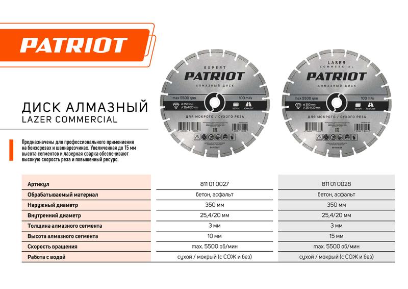 Диск EXPERT алмазный сегментный 350х25.4/20 бетон/асфальт PATRIOT 811010027 фото в каталоге от BTSprom.by