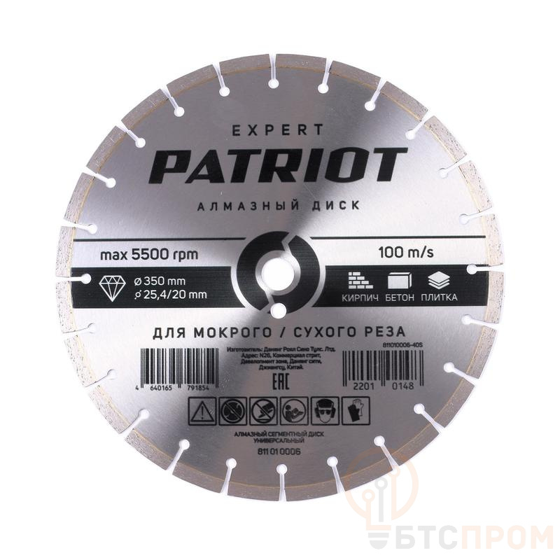 Диск EXPERT алмазный сегментный 350х25.4/20 универсальный PATRIOT 811010006 фото в каталоге от BTSprom.by