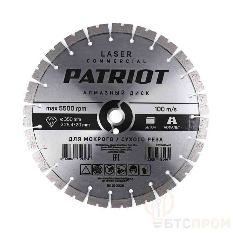 Диск LASER COMMERCIAL алмазный сегментный 350х25.4/20 бетон/асфальт PATRIOT 811010028 фото в каталоге от BTSprom.by