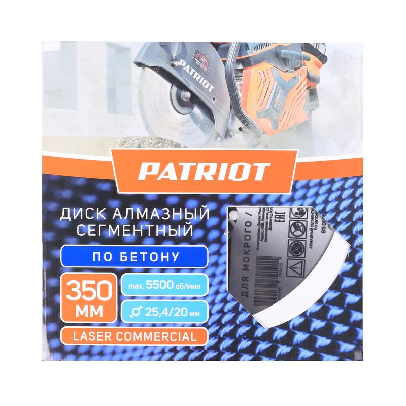 Диск LASER COMMERCIAL алмазный сегментный 350х25.4/20 по бетону PATRIOT 811010017