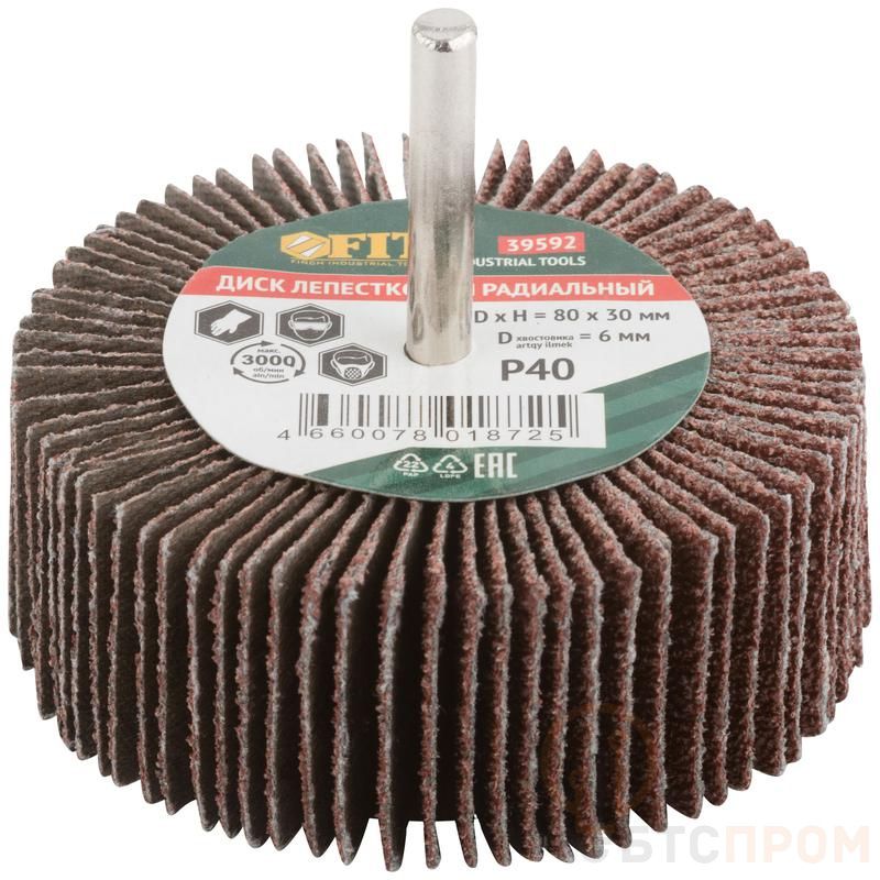 Диск лепестковый для дрели радиальный 80х30х6мм Р40 FIT 39592 фото в каталоге от BTSprom.by