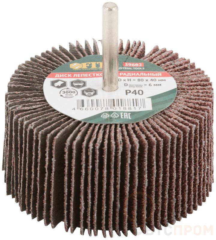 Диск лепестковый для дрели радиальный 80х40х6мм Р40 FIT 39602