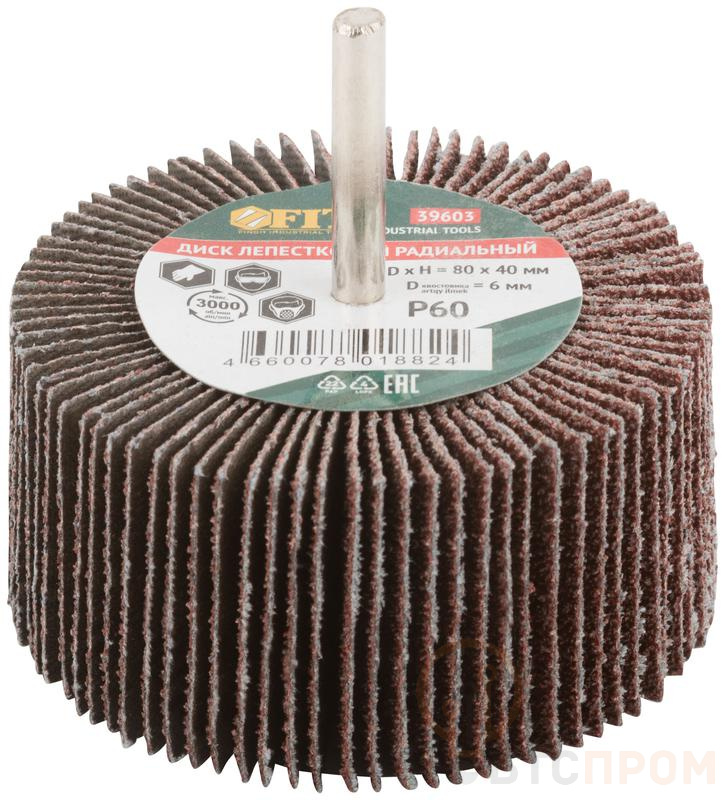 –Диск лепестковый для дрели радиальный 80х40х6мм Р60 FIT 39603