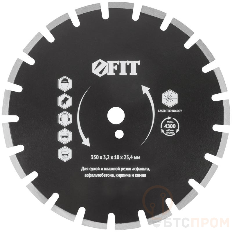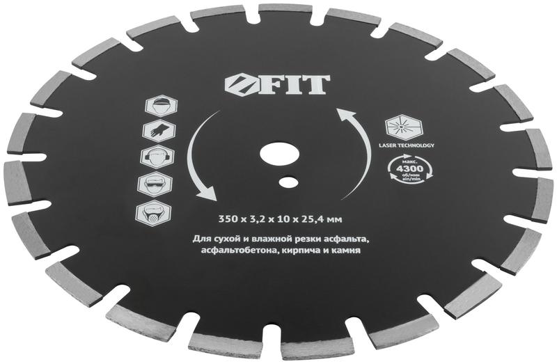 Диск отрезной алмазный сегментный для асфальта асфальтобетона кирпича 350х3.2х10х25.4мм сухая и влажная резка FIT 37327