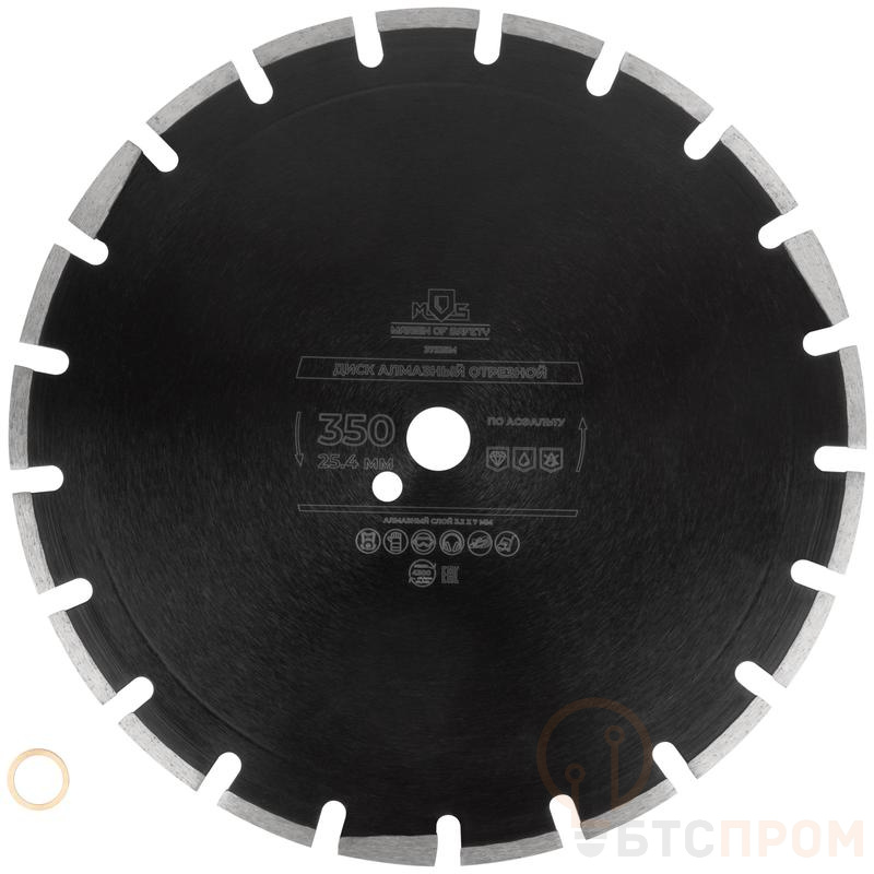 Для бензорезов и швонарезчиков. Для сухой и влажной резки асфальта, асфальтобетона, тротуарной плитки. Высота алмазной режущей кромки 7 мм. Посадочный диаметр 25,4 мм. Материал: инструментальная сталь, режущая кромка содержит порошок из технических алмазов. Упаковка: картонный конверт.
