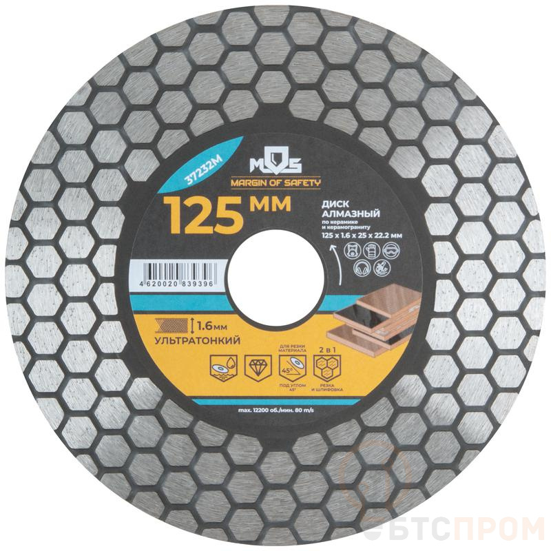 Диск отрезной алмазный по керамике и керамограниту 125х1.6х25х22.2мм MOS 37232М фото в каталоге от BTSprom.by