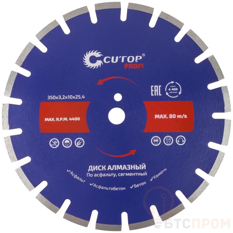 Промышленный диск алмазный Cutop Profi предназначен для сухой и мокрой резки бетона, железобетона, плитки, кирпича, камня и других высокоабразивных и среднеабразивных материалов. Способен резать железобетонные конструкции, кирпич, известняк и другие твердые материалы. Используется в швонарезчиках и бензорезах. Благодаря широкому алмазному слою обеспечивается быстрое резание и долгий срок службы изделия. Режущая кромка высотой 10 мм состоит из сегментов, изготовленных с применением высококачественных технических алмазов повышенной прочности, приваренных методом пайки к телу диска. Диск имеет дополнительное крепежное отверстие на корпусе, которое используется для лучшей фиксации диска и защиты от проскальзывания во время работы.