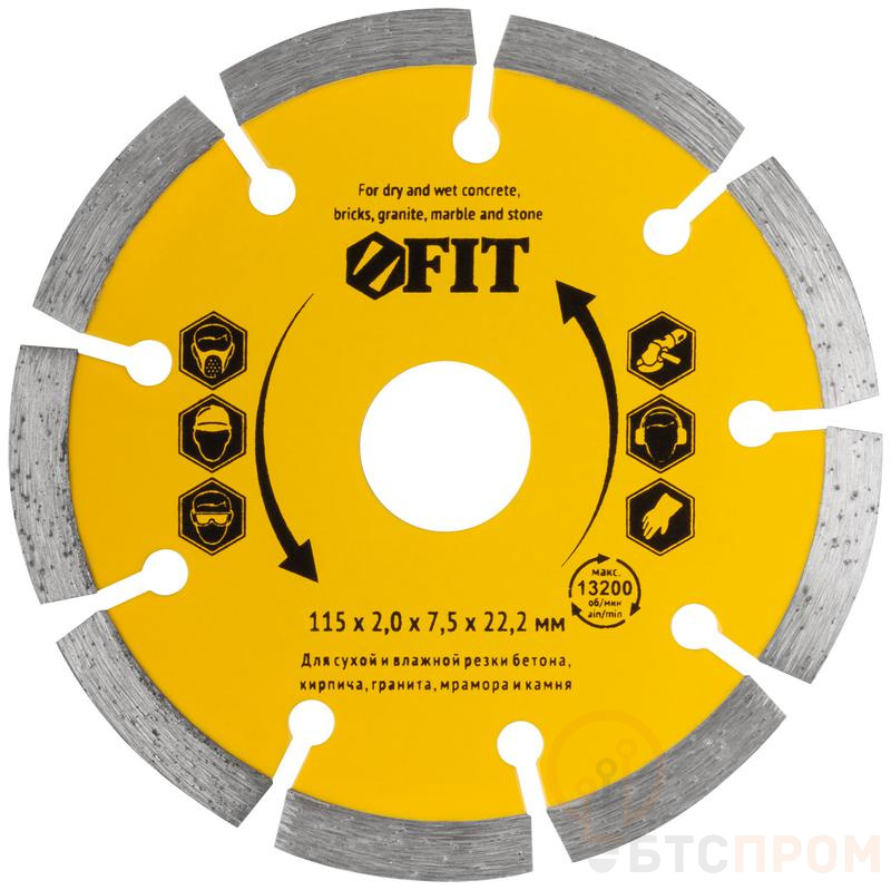 Сегментный, для сухой и влажной резки. Применяется для резки бетона, кирпича, гранита, мрамора и камня. Высота алмазной режущей кромки 7,5 мм. Посадочный диаметр 22,2 мм. Материал: высококачественная инструментальная сталь, режущая кромка содержит порошок из технических алмазов. Упаковка: картонный конверт.