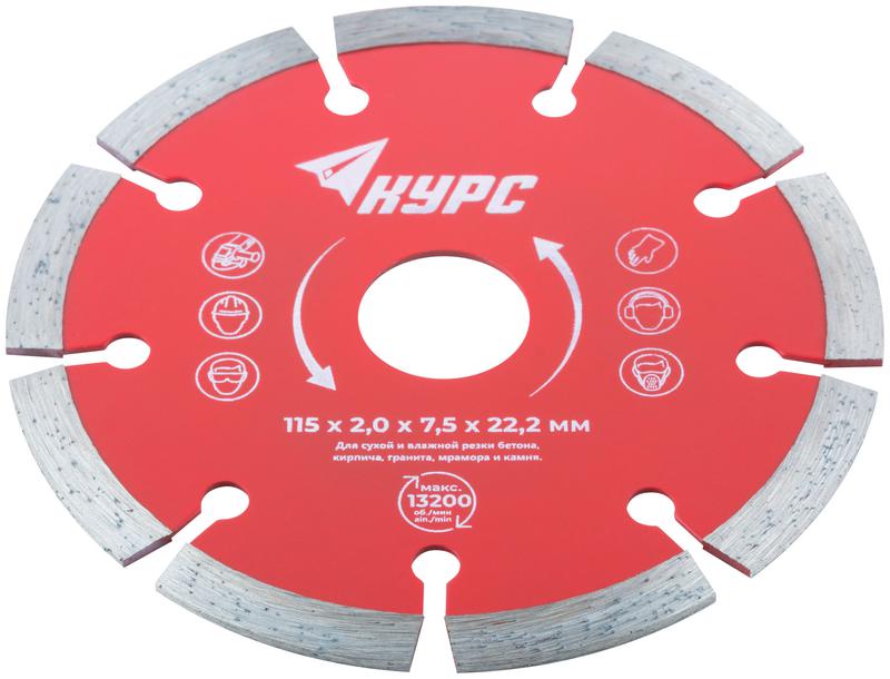 Диск отрезной алмазный сегментный 115х2.0х7.5х22.2мм сухая и влажная резка КУРС 37261 фото в каталоге от BTSprom.by
