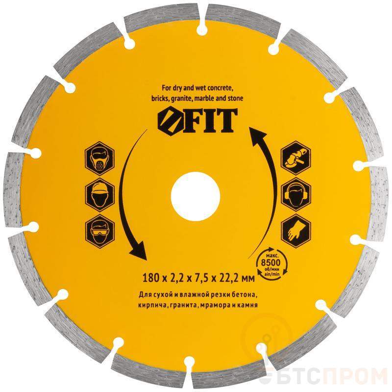 Диск отрезной алмазный сегментный 180х2.2х7.5х22.2мм сухая и влажная резка FIT 37465 фото в каталоге от BTSprom.by