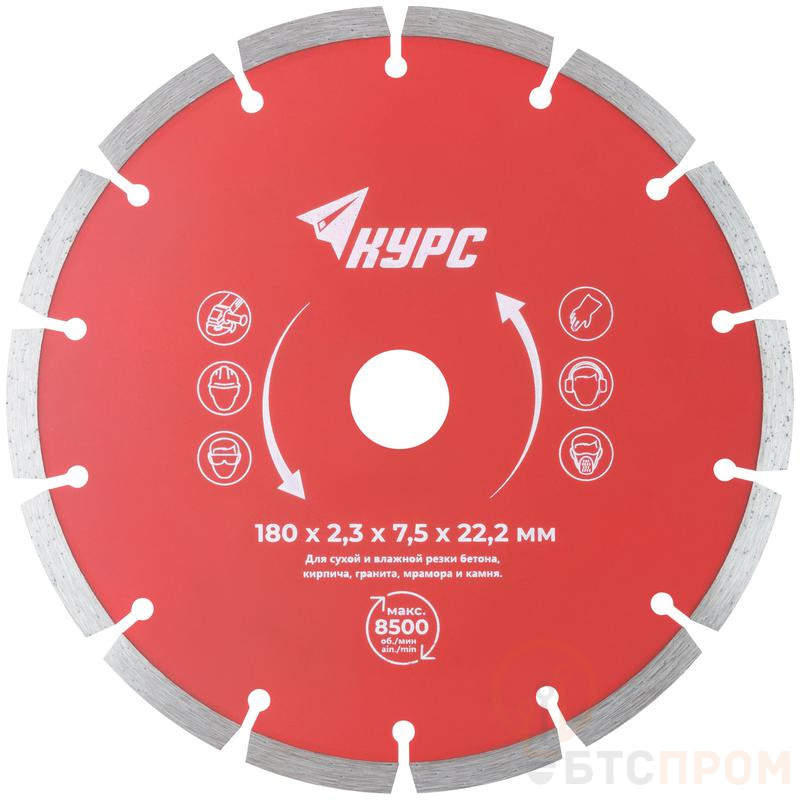 Диск отрезной алмазный сегментный 180х2.3х7.5х22.2мм сухая и влажная резка КУРС 37264 фото в каталоге от BTSprom.by