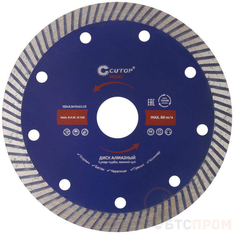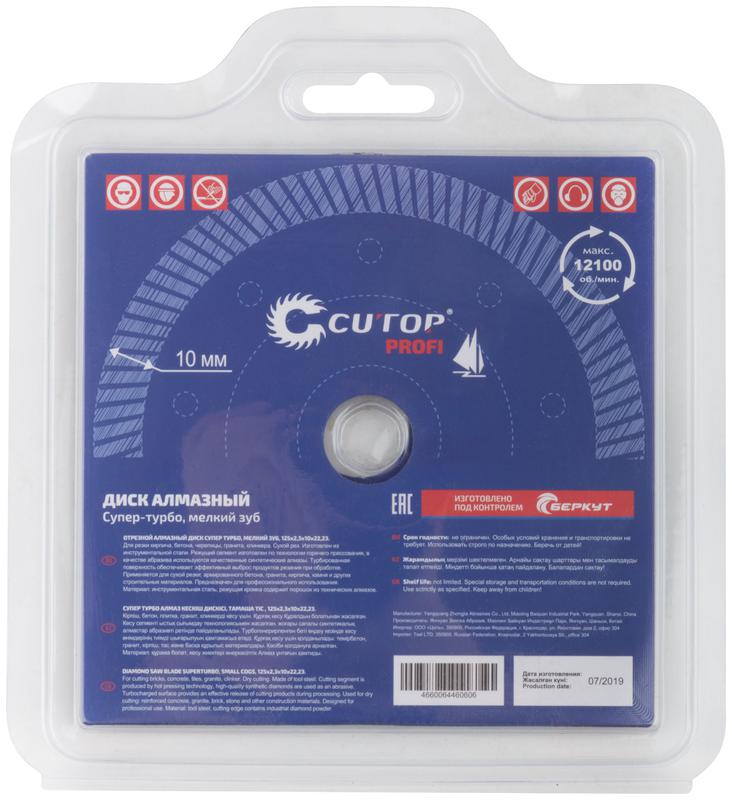 Отрезной алмазный диск ‘’супертурбо, мелкий зуб’’ Cutop Profi применяется для сухой и влажной резки армированного бетона, гранита, кирпича, камня и других строительных материалов. Предназначен для профессионального использования. Изготовлен из инструментальной стали. Режущая кромка содержит порошок из качественных синтетических алмазов. Турбированная поверхность обеспечивает эффективный выброс продуктов резания при обработке.