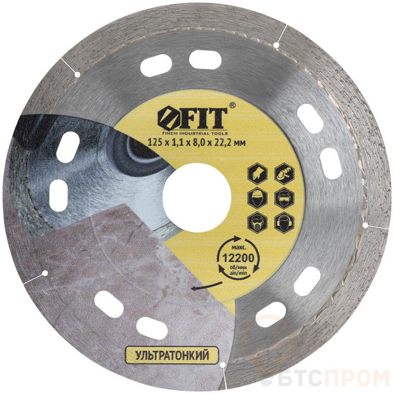 Диск отрезной алмазный тонкий по кафелю и керамограниту Профи 125х1.1х8.0х22.2мм сухая и влажная резка FIT 37445