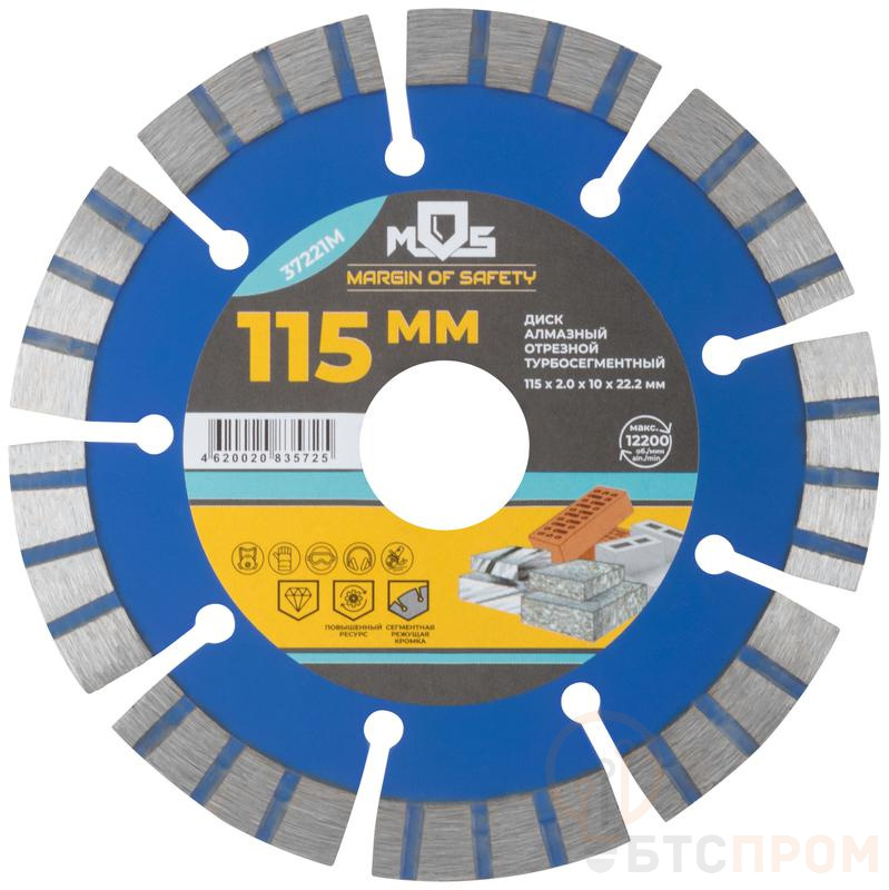 Диск отрезной алмазный сегментный Турбо 115х2.0х10х22.2мм MOS 37221М фото в каталоге от BTSprom.by