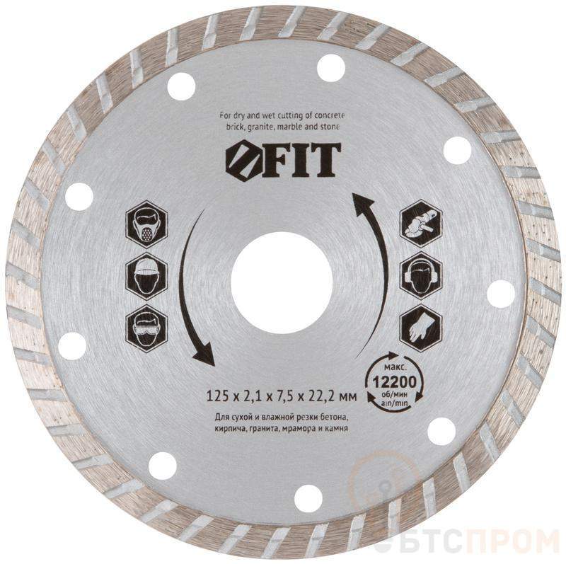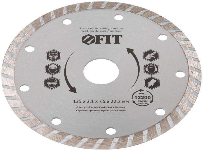 Диск отрезной алмазный «Турбо» FIT IT предназначен для сухой и влажной резки кирпича, армированного бетона, мрамора, гранита и других твердых материалов. Для использования с УШМ. Высокий рабочий ресурс дисков достигается за счет повышенной концентрации алмазного зерна в режущей кромке. Специальный турбопрофиль режущей кромки увеличивает скорость реза и способствует более эффективному удалению отработанного материала, предотвращая перегрев диска.