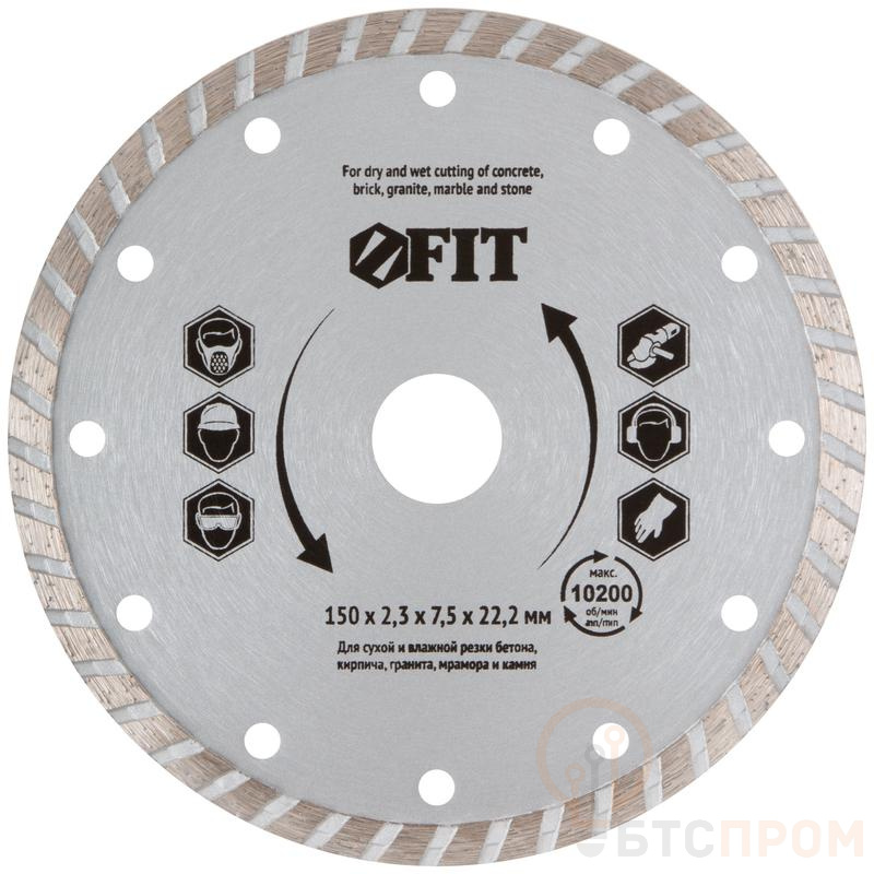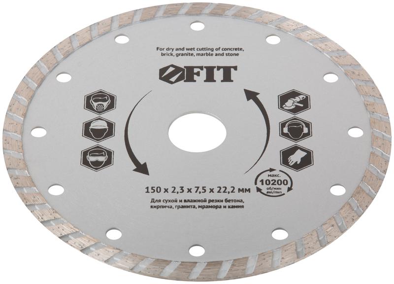 Диск отрезной алмазный «Турбо» FIT IT предназначен для сухой и влажной резки кирпича, армированного бетона, мрамора, гранита и других твердых материалов. Для использования с УШМ. Высокий рабочий ресурс дисков достигается за счет повышенной концентрации алмазного зерна в режущей кромке. Специальный турбопрофиль режущей кромки увеличивает скорость реза и способствует более эффективному удалению отработанного материала, предотвращая перегрев диска.