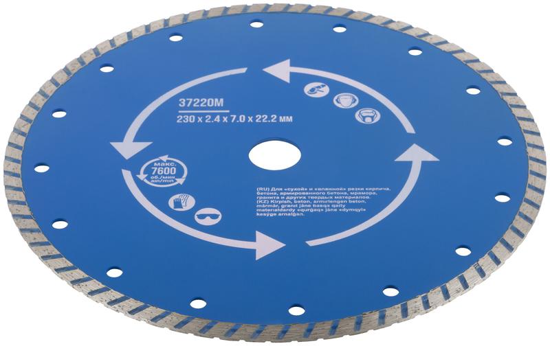 Диск отрезной алмазный ‘’Турбо’’ MOS предназначен для сухой и влажной резки кирпича, армированного бетона, мрамора, гранита и других твердых материалов. Для использования с УШМ. Специальный турбопрофиль режущей кромки увеличивает скорость реза и способствует более эффективному удалению отработанного материала, предотвращая перегрев диска.