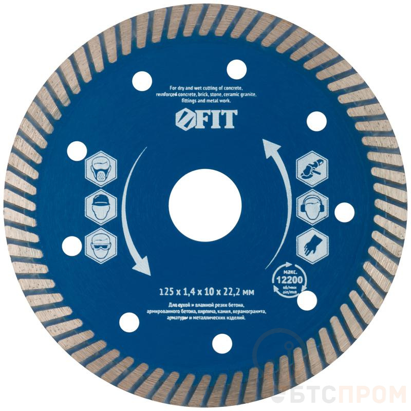 Диск отрезной алмазный ‘’Армобетон турбо’’ применяется для сухой и влажной резки бетона, кирпича, гранита, керамогранита, мрамора и камня. Диск изготовлен по технологии горячего спекания, обеспечивающего высокую износоустойчивость. Специально подобранные компоненты металлической связки и размер алмазного зерна позволяют эффективно резать широкий спектр твердых материалов, в частности армированный бетон, арматуру и металлический профиль. Высокий ресурс диска достигается за счет высоты алмазной кромки в 10 мм. Диск не уменьшается в диаметре при резке различных материалов. Перфорация на диске и сегментная форма рабочей части обеспечивают эффективное охлаждение и предотвращают деформацию во время работы. Диски способны эффективно работать без принудительного охлаждения водой.