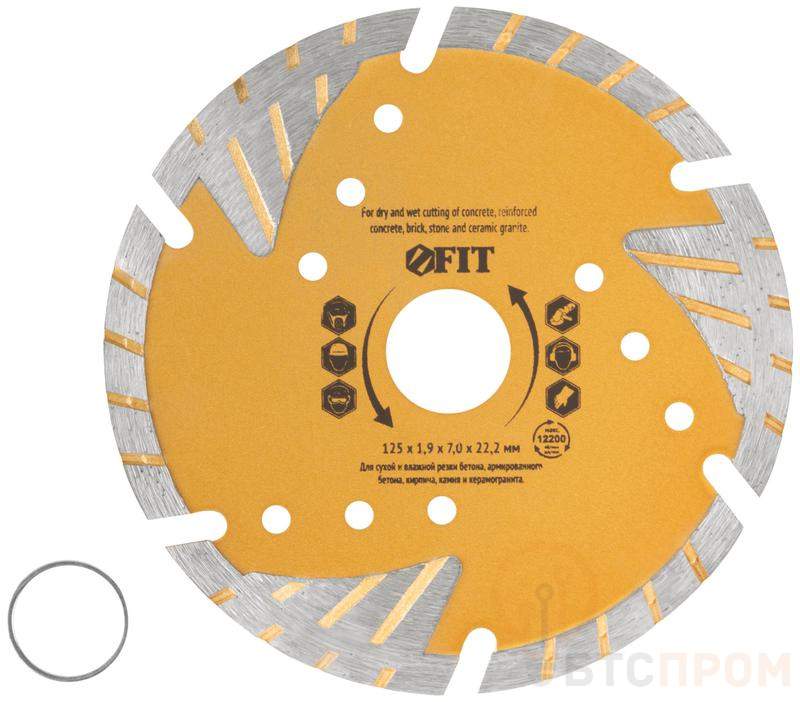 Диск отрезной алмазный универс. 125х1.9х7х22.2мм сухая и влажная резка с защитными секторами FIT 37546