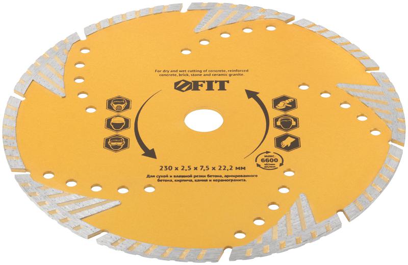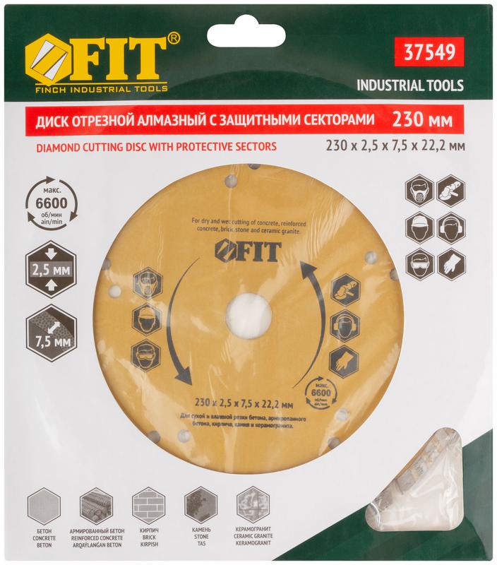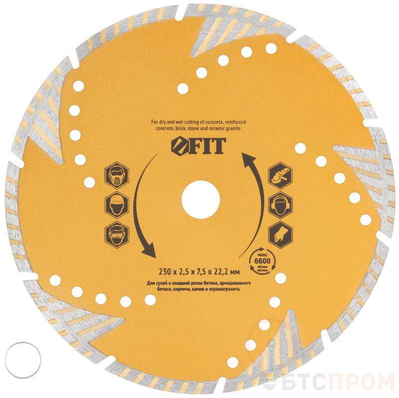 Диск отрезной алмазный универс. 230х2.5х7.5х22.2мм сухая и влажная резка с защитными секторами FIT 37549