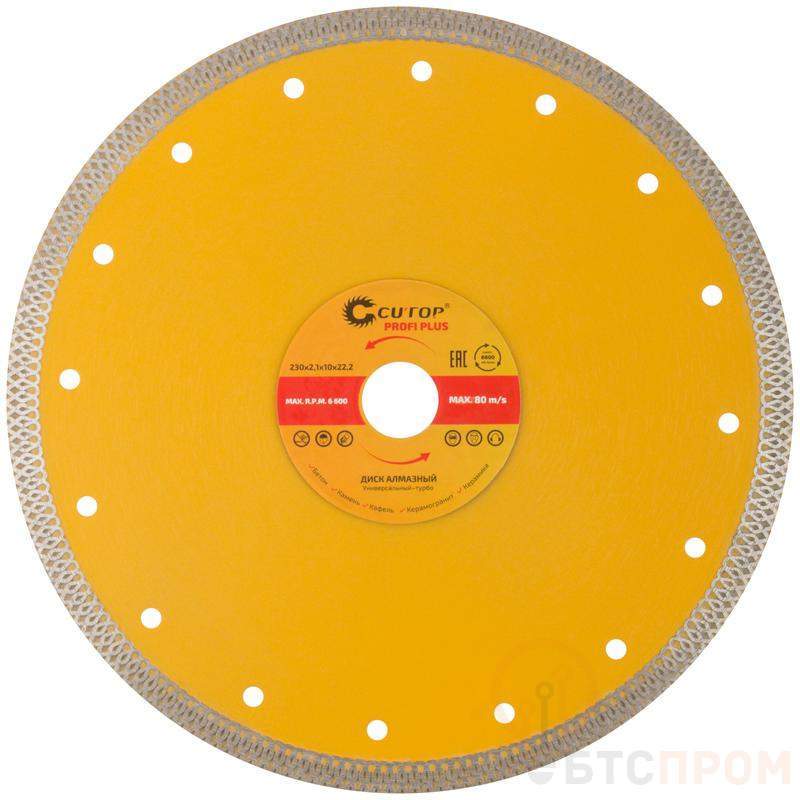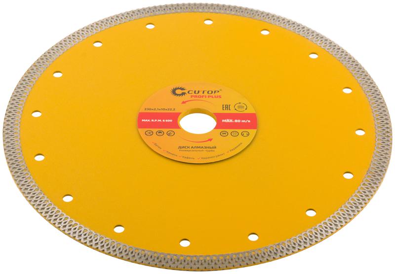 Для резки керамической плитки. Сухая, влажная резка. Применяется на УШМ и стационарных плиткорезах для резки с охлаждением керамогранита, твердой и мягкой керамической плитки, искусственного и натурального камня. Режущая кромка обеспечивает высокую скорость резки и аккуратный точный распил плитки без трещин и сколов. Высокая концентрация алмазов мелкой фракции обеспечивает идеальную чистоту получаемых кромок. Изготовлен методом горячего прессования, что обеспечивает большую твердость и более длительный срок службы диска в сравнении с методом холодного прессования. Высота алмазного режущего слоя в 10 мм позволяет использовать круг для большого объема работ. Специальная форма режущей кромки обеспечивает лучшее охлаждение круга во время работы для большей эффективности использования. Усиление диска в районе посадочного отверстия для повышения жесткости и снижения вибраций. Материал: инструментальная сталь, режущая кромка содержит порошок из технических алмазов. Упаковка: блистер.