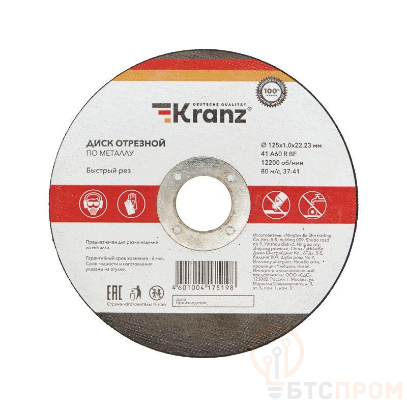 Диск отрезной по металлу 125х1.0х22.23мм Kranz KR-90-0912 фото в каталоге от BTSprom.by