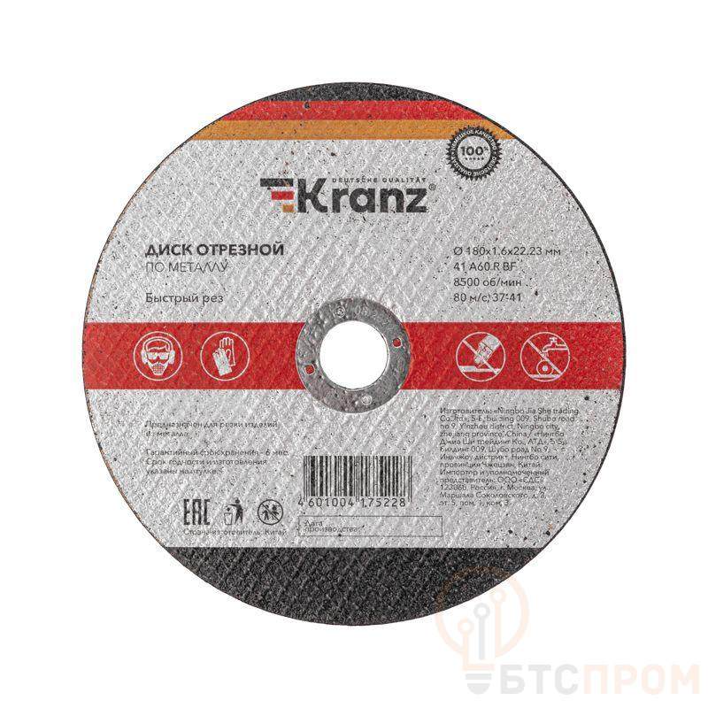 Диск отрезной по металлу 180х1.6х22.23мм Kranz KR-90-0932 фото в каталоге от BTSprom.by