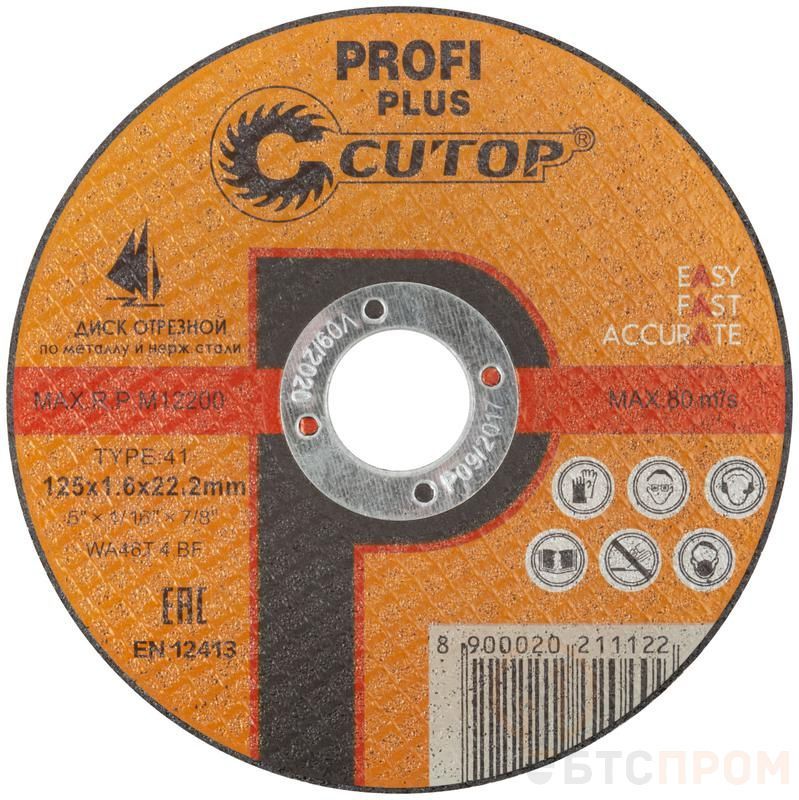 Диск отрезной по металлу нерж. стали и алюм. Profi Plus Т41-125х1.6х22.2мм Cutop 40005т фото в каталоге от BTSprom.by
