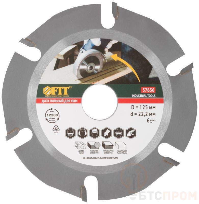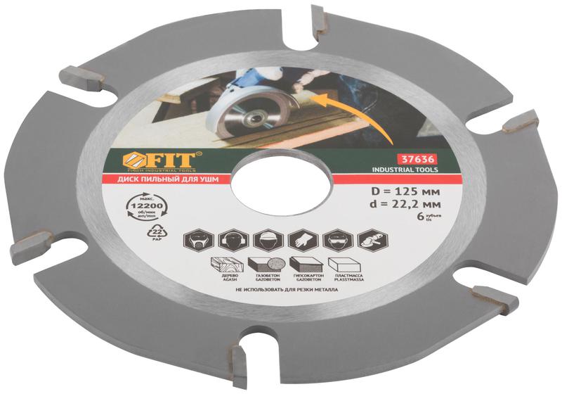 Пильный диск FIT IT для УШМ с шестью зубьями предназначен для обработки дерева, газобетона, пластмассы. Специальная форма диска препятствует его застреванию в материале. Карбидные напайки обеспечивают качественный, быстрый и чистый рез. Диск подходит для работ с различными породами древесины, справляясь как с мягкими, так и с твердыми сортами.