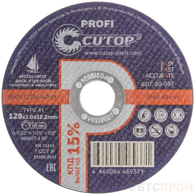 Диск отрезной по металлу и нержавеющей стали Cutop Profi используется с УШМ для резки сталей и различных сплавов. Предназначен для профессионального применения. Диск изготовлен на основе монокристаллического электрокорунда, который улучшает КПД диска и позволяет увеличить количество резов в несколько раз.